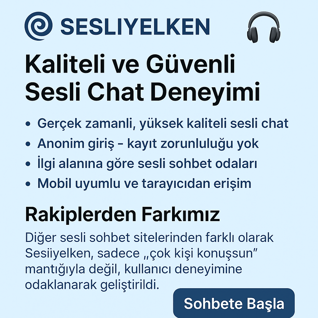 Sesliyelken, sesli sohbet dünyasında kalite, güvenlik ve sadelik arayan herkes için en ideal platformdur.